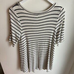 Style notes: white, black, striped, stripes, jersey, cotton, flowy, contrast, summer, classic, neutrals, chic, casual, timeless, effortless, classic, closet staple, wardrobe essential