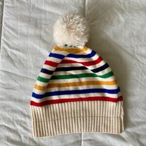 Keep your child cozy with this colorful striped beanie featuring a playful pom pom. Perfect for adding a splash of color to any outfit.