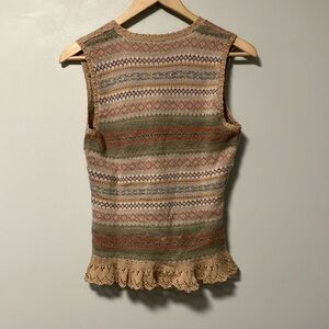 Stay stylish with this striped knit sleeveless sweater vest. Featuring a blend of earthy tones, it's perfect for layering. Ideal for casual outings or cozy days at home.