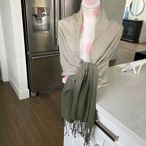 Striped Lightweight Ombre Fringed Wrap or Scarf Cream + Green - no tags
