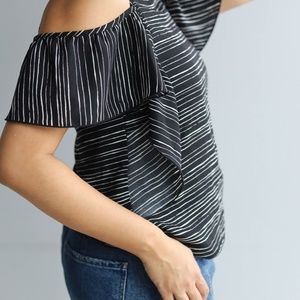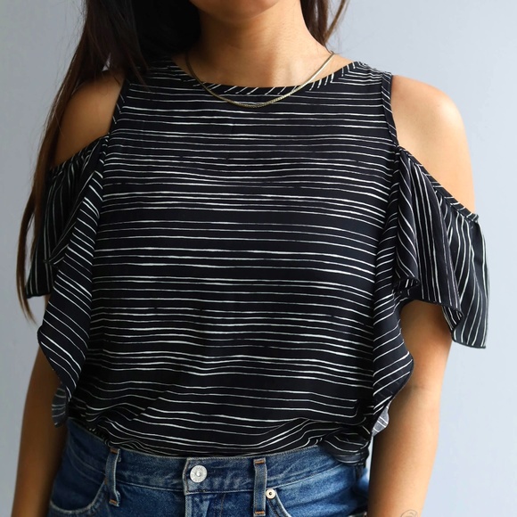 Striped Navy blue Cutoff shoulder Blouse