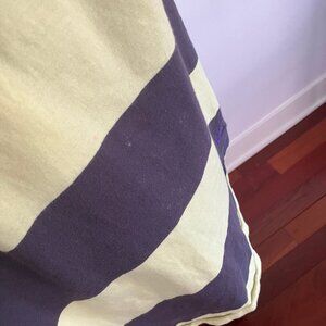 Striped Nike tank -- thick bands of pale yellow and grey on the front, mix stripes of pale yellow and grey with more thin stripes in blue and black on the back