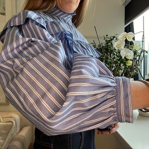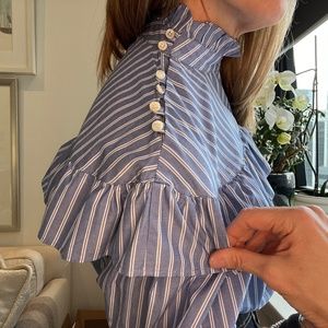 3/4 sleeve with small arm opening. Buttons around arm do not close/button up. It is meant to worn open