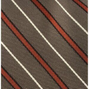 Striped Repp Tie Michael Rochchaud Montreal Mens Necktie Brown & Red Polyester