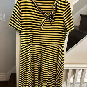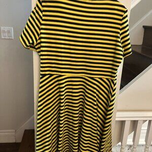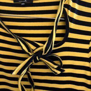 Very sweet neckline and bright yellow stripes. Marked XXL. Some strain on seams (pictured).