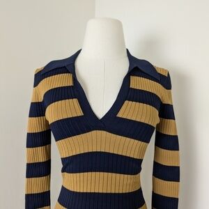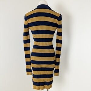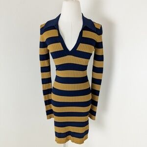 Striped Ribbed Mini Dress Long Sleeve 70’s Style Twik Soft Bodycon Tight Fitted