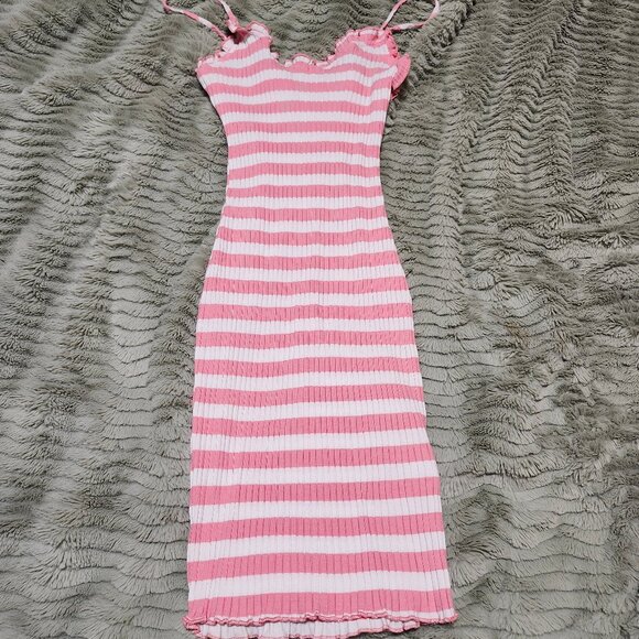 Pink and white stripey ribbed knit summer dress. Super comfy and stretchy. US made.
