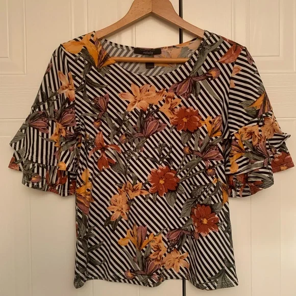 Striped Ruffle Cap Sleeve Top
