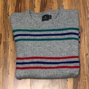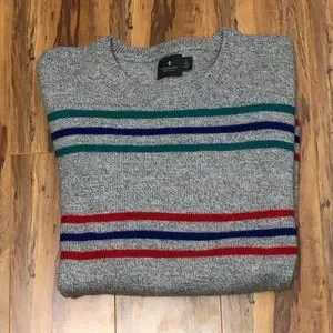 Medium weight crew neck with green/red/blue striping on marked grey background. Nylon/wool/acrylic blend. EUC. Label is ‘Hawkings McGill’. Marked as size L from men’s department. Please see msmts for your perfect fit.