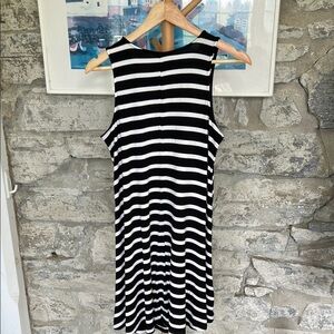 Chic sleeveless dress with black and white stripes. Perfect for casual outings. Measurements: pit to pit in pic and 36” length. Excellent condition.