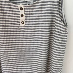 Forever 21 striped grey and white tank top featuring brown buttons on front.