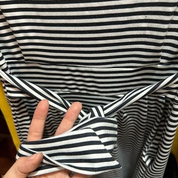 Striped Tie Waist Short Sleeve Dress - Black and White - With Pockets