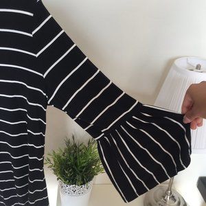 Black and white striped Van Heusen top with trumpet sleeves