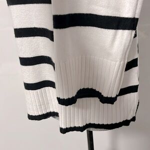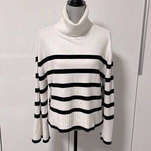 LAUNDRY by Shelli Segal turtleneck sweater in off white with black stripes. High turtleneck style boxy cute and wide sleeve with ribbed arm and bottom. Classic style perfect for a minimalist wardrobe and the office. Excellent condition.