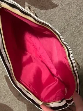 Branded striped bag, pink inside