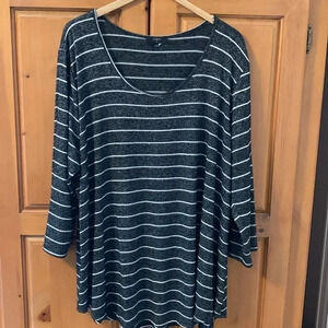 Dark grey/charcoal and white stripes. 3/4 sleeves. Lightweight and stretchy. Size 3X.