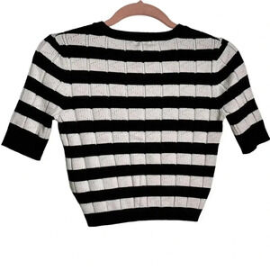 Forever 21 Cropped Summer sweater, label says Small but fits Medium very well, with short sleeves, black & white stripes with small eyelet texture. Perfect Condition! Great top to wear with high-waisted pants!