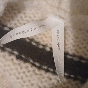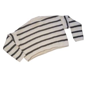 cream and black striped cozy cable knit sweater
