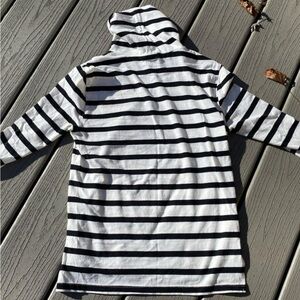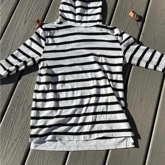 Slow fashion black and white striped turtleneck from Tradlands. Perfect layering piece or on its own. 95% cotton, 5% spandex. Measures 16.5” pit to pit, sleeves are 19.75” long.