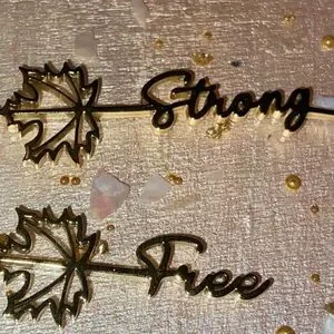 Maple leafs with “Strong” and “Free” text.
