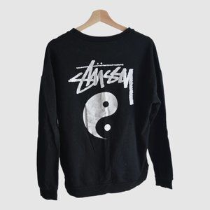 Stüssy Black Crewneck with Yin-Yang Print – Vintage, Size M, Cracked