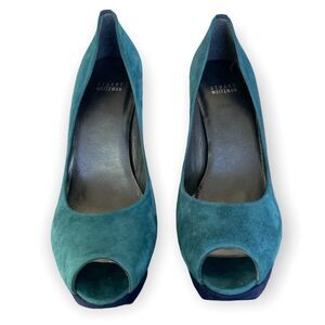 EUC genuine suede leather platform open toe pump heels by STUART WEITZMAN