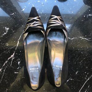 Stuart Weinztman Black Suede Pumps with silver leather detailing