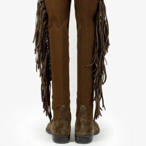 Stuart Weitzman 5050 Mane Fringe Olive Suede Leather OTK Boots