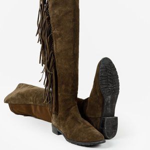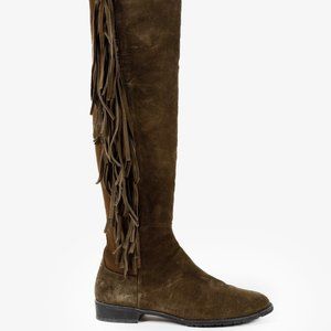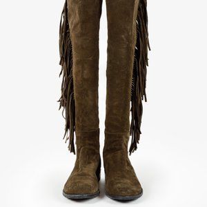 Stuart Weitzman 5050 Mane Fringe Olive Suede Leather OTK Boots