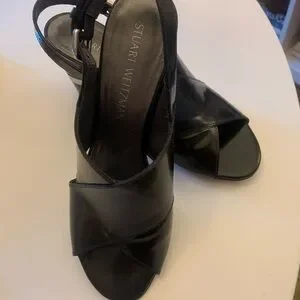 Beautiful mint condition Stuart Weitzman 3”heel with silver metal banding detail. Black. Classic style, goes with everything. Tad tight on me