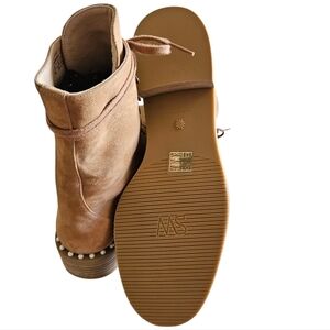 Stuart Weitzman Allie Suede Feminine Casual Leather Pearls Camel Boots Size 8.
