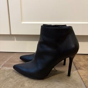 Black leather ankle boots with pointy toe and 3.5inch heel.