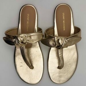 Stuart Weitzman Bandeau Gold Leather T-Strap Slide Sandal w Bow Size 6-6.5