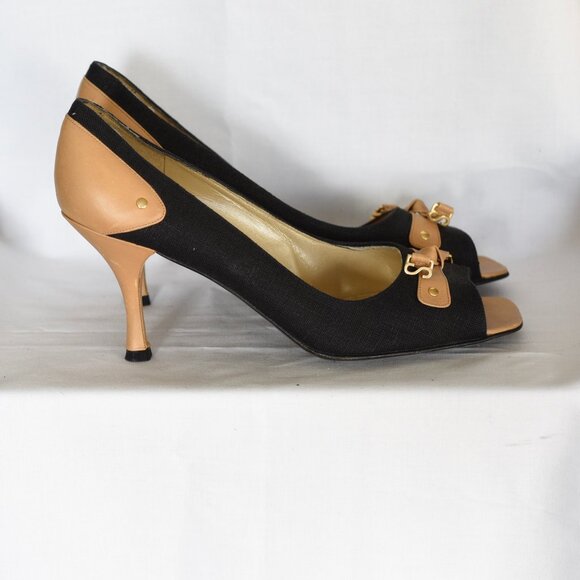 Stuart Weitzman Black And Tan Open Toe Pumps - Spain