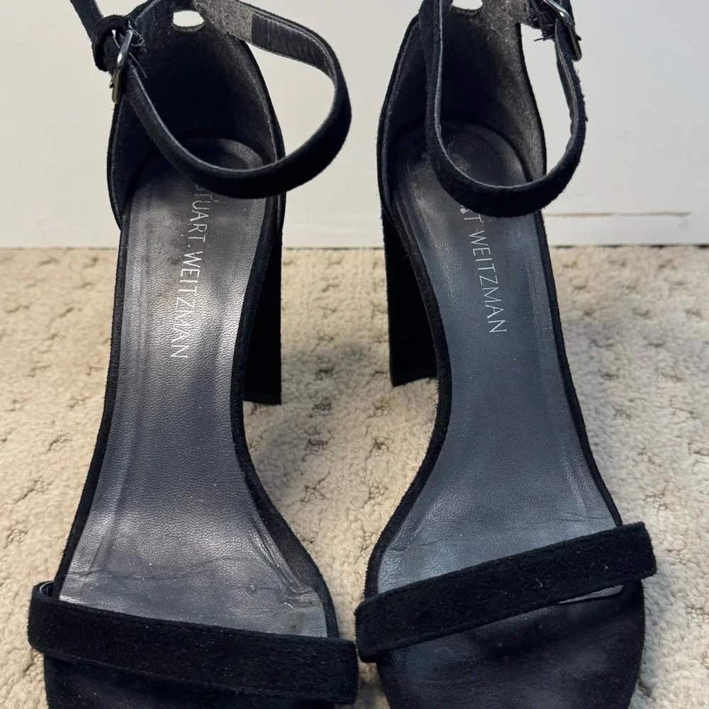 Stuart Weitzman Black Block Heel Sandals