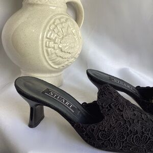 Stuart Weitzman Black Crochet Lace Mule
