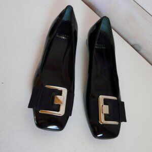 Stuart Weitzman Black Patent Leather Slip On Large Buckle Flats Sz 37 US 6.5