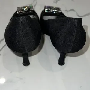 Stuart Weitzman Black Satin Jewel Embellished Peep toe pumps shoes size 6.5 M