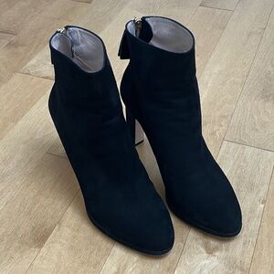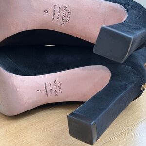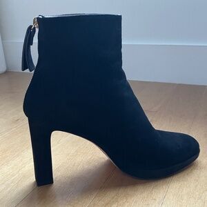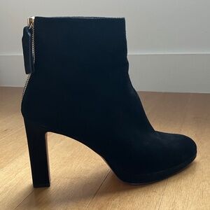 Stuart Weitzman Black Suede Booties with Gold-Tone Zipper