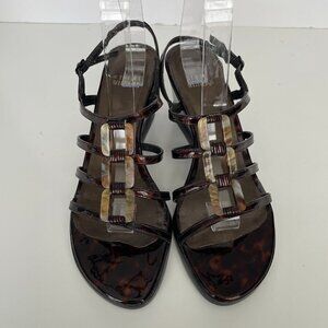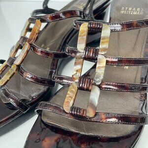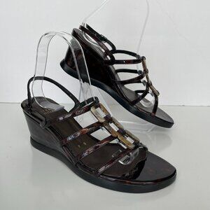 Stuart Weitzman Black and Brown Strappy Wedge Sandals