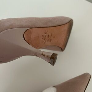Chic blush suede heels by Stuart Weitzman. Ideal for elegant outings. Comfortable and stylish.