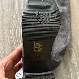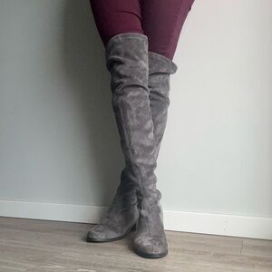 Grey suede over the knee boots by Stuart Weitzman . Like new condition. Worn twice. Designed with an adjustable tie back detail for a personalized fit and rubber outsole with grooves for added traction. Dust bag and box included. Made in Spain