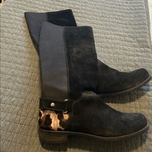 With a pony hair detail on the back heels, this suede boot is gorgeous. Only worn a few times and in excellent condition. Size 8 but I’d say generous as I’m usually an 8.5 to 9 and they fit quite well.