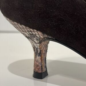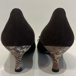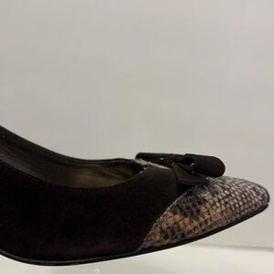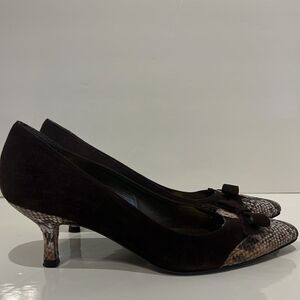 Stuart Weitzman Brown Suede/Embossed Leather Toe and Kitten Heel Shoes Size 7
