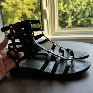 Stuart Weitzman - Caesar Leather Gladiator Sandas - Black Leather - Size 7