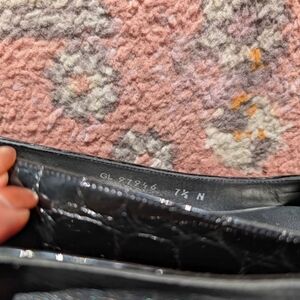 Stuart Weitzman Croc Embossed Leather Heels Size 7.5 Square Toe Block Heel