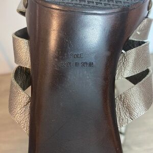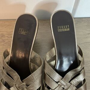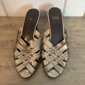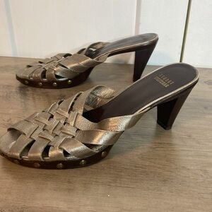 Stuart Weitzman | Dark Bronze Leather Woven Heeled Sandals - Clog Stud Style - 8