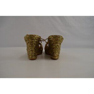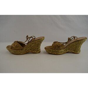 Stuart Weitzman Espadrilles Size 9.5S Strappy Open Toe Wedge Sandals Shiny
