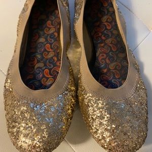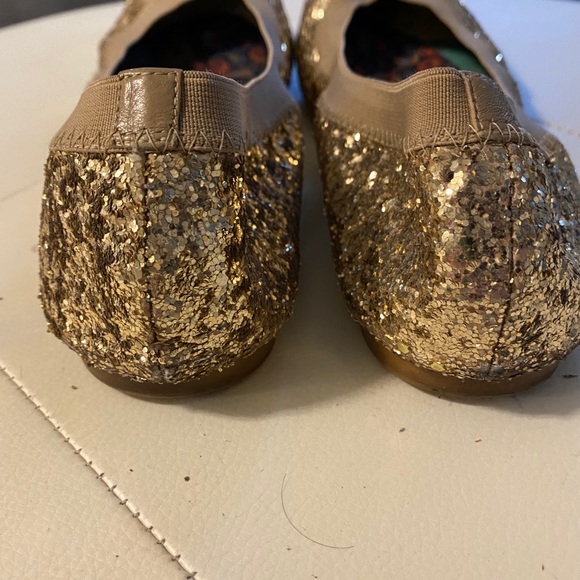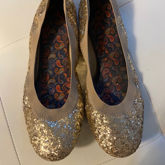 These shoes are gorgeous and definitely make an impact when worn. They are still in great condition the insole is the area most worn out strangely enough but an insert of any insole will fix that. They are full of glitter and a great addition.
