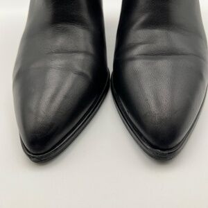 Stuart Weitzman Gardiner Bow Accent Block Heel Bootie Black Leather Women's 6